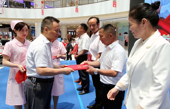 开展无偿献血志愿者文艺表演活动。6月12日,盐城市中心血站与盐城市无偿献血志愿服务队在爱琴海购物公园联合举行了以“献血,让世界继续跳动”为主题的广场文艺表演活动。无偿献血志愿服务者们表演了舞蹈、淮剧、萨克斯独奏、古筝演奏、太极拳、诗朗诵、故事分享会等节目,整场节目新颖,主题突出,寓意深刻,富有感染力。活动现场,徐维林副会长、葛健民站长分别为2018-2019年度全国无偿献血奉献奖和全国无偿献血志愿服务星级奖中的获奖代表颁奖。演出中间还穿插了互动环节“无偿献血知识问答”,通过寓教于乐的方式向大家传播无偿献血知识。活动吸引了众多市民的驻足观赏,让大家深刻了解了献血的意义、唤起了更多市民对生命的关注。