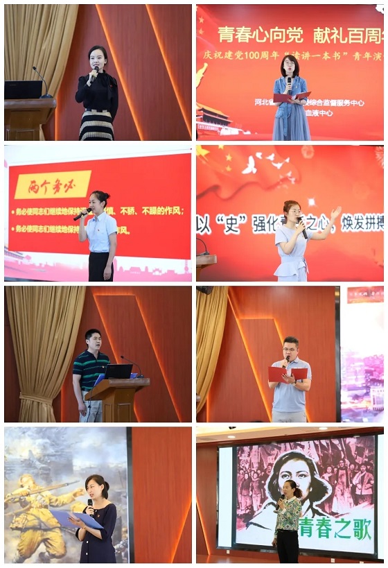 为庆祝中国共产党成立100周年,开展好党史学习教育,做到学史明理、学史增信、学史崇德、学史力行,6月4日上午,河北省血液中心与委综合监督服务中心共同举办的“青春心向党 献礼百周年”读讲一本书青年演讲比赛在省血液中心6楼会议厅激情开讲。省血液中心纪检书记王凤红同志发表致辞,预祝此次活动顺利开展,圆满成功。