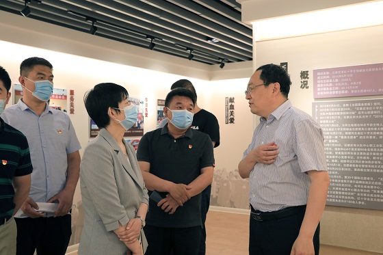 演讲比赛开始前,省血液中心党委书记戚海同志陪同委监督中心纪检书记邸凤莲同志和参赛选手及职工参观了省血液中心站史馆和血液科普馆。