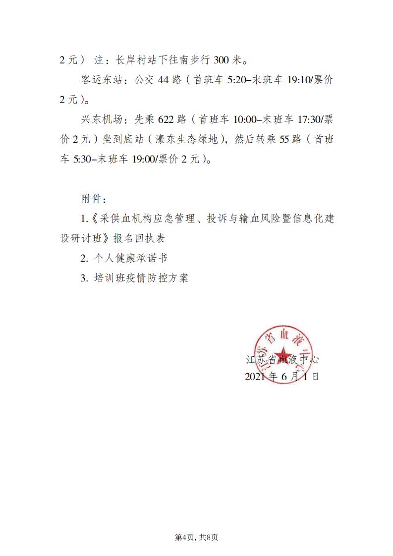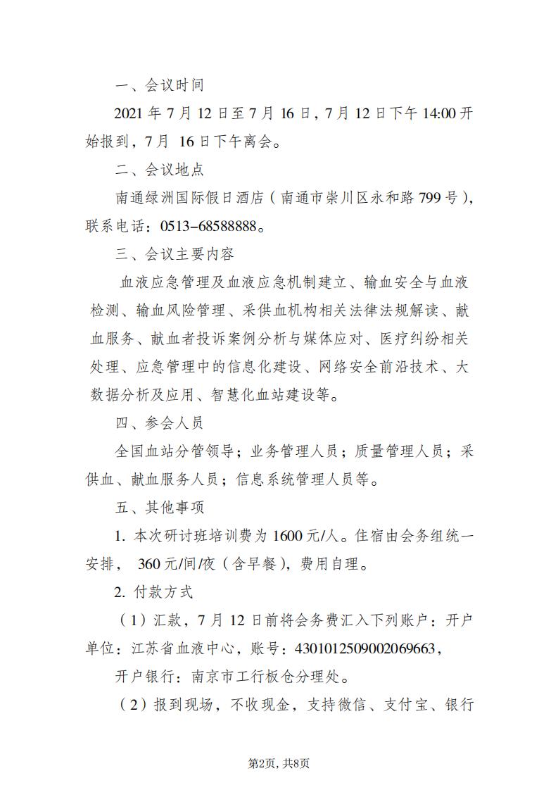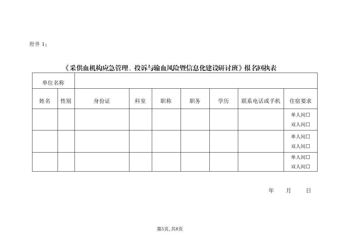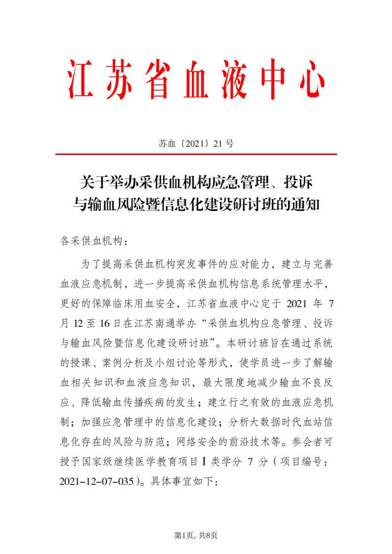 关于举办采供血机构应急管理、投诉与输血风险暨信息化建设研讨班的通知