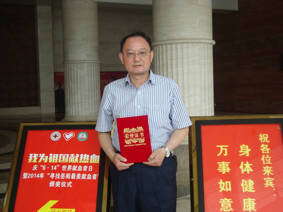 1996年9月16日,正好是言庆30周岁生日。年轻的他走在岳阳街头,心里总想着而立之年,该用怎样的方式来纪念一下呢?“我当时算得上是进步青年,喜欢读书看报,经常在电视节目和报刊上看到无偿献血的报道。当时就动了个念头,要不我去献血吧!”言庆想既然是而立之年,立家立户,就是能够有担当、有责任、能够帮助他人。当即就拍板,行,那就去献血!