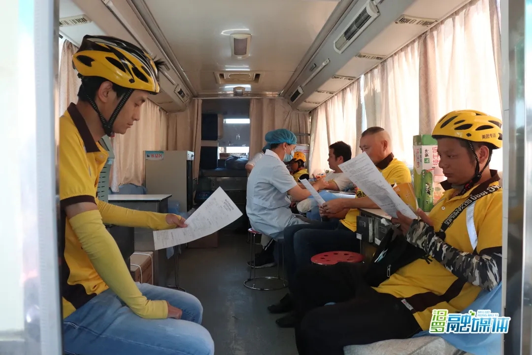 上午9点,结束了早上送餐的任务,美团骑手陆陆续续来到公司,在医务人员的指导下,测量体温、血压,抽血化验,随后登上岳阳中心血站的爱心献血车。献血队伍中有些是第一次参加献血的,也有长期参加无偿献血的,他们表示,能帮助到那些需要输血的人,是一件十分有意义的事。