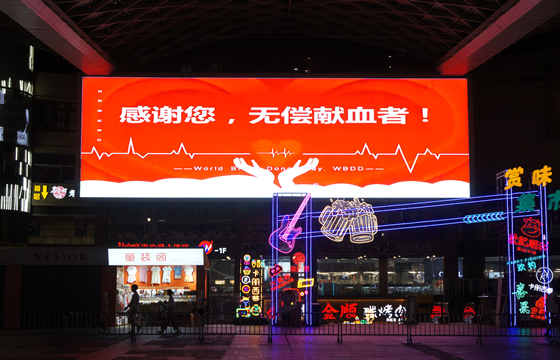 2021年世界献血者日前后,佛山市中心血站在东方广场、铂顿城等多个繁华商圈举行世界献血者日亮灯仪式,向广大无偿献血者致敬。