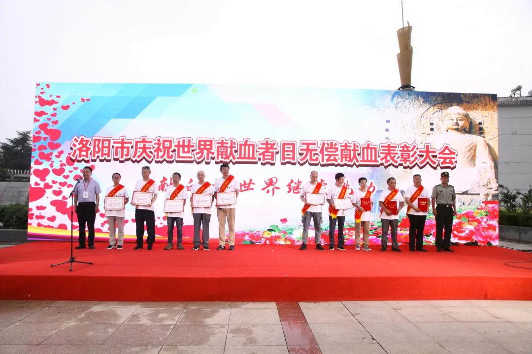 2021年6月14日是第18个世界献血者日,河南省洛阳市举行庆祝世界献血者日无偿献血表彰大会,现场为获奖代表颁发了2018—2019年度全国无偿献血奉献奖金奖、全国无偿献血志愿服务奖、无偿捐献造血干细胞奖、2018—2019年度全国无偿献血促进奖单位奖和个人奖。