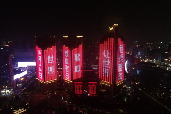23块户外大屏、330面电梯、200辆公交……自6月9日起,嘉兴市中心血站多屏联动齐“发力”,为无偿献血助力,佳源四季酒店进行了为期三天的灯光秀,用璀璨绚丽的灯光秀,向广大无偿献血者致敬。