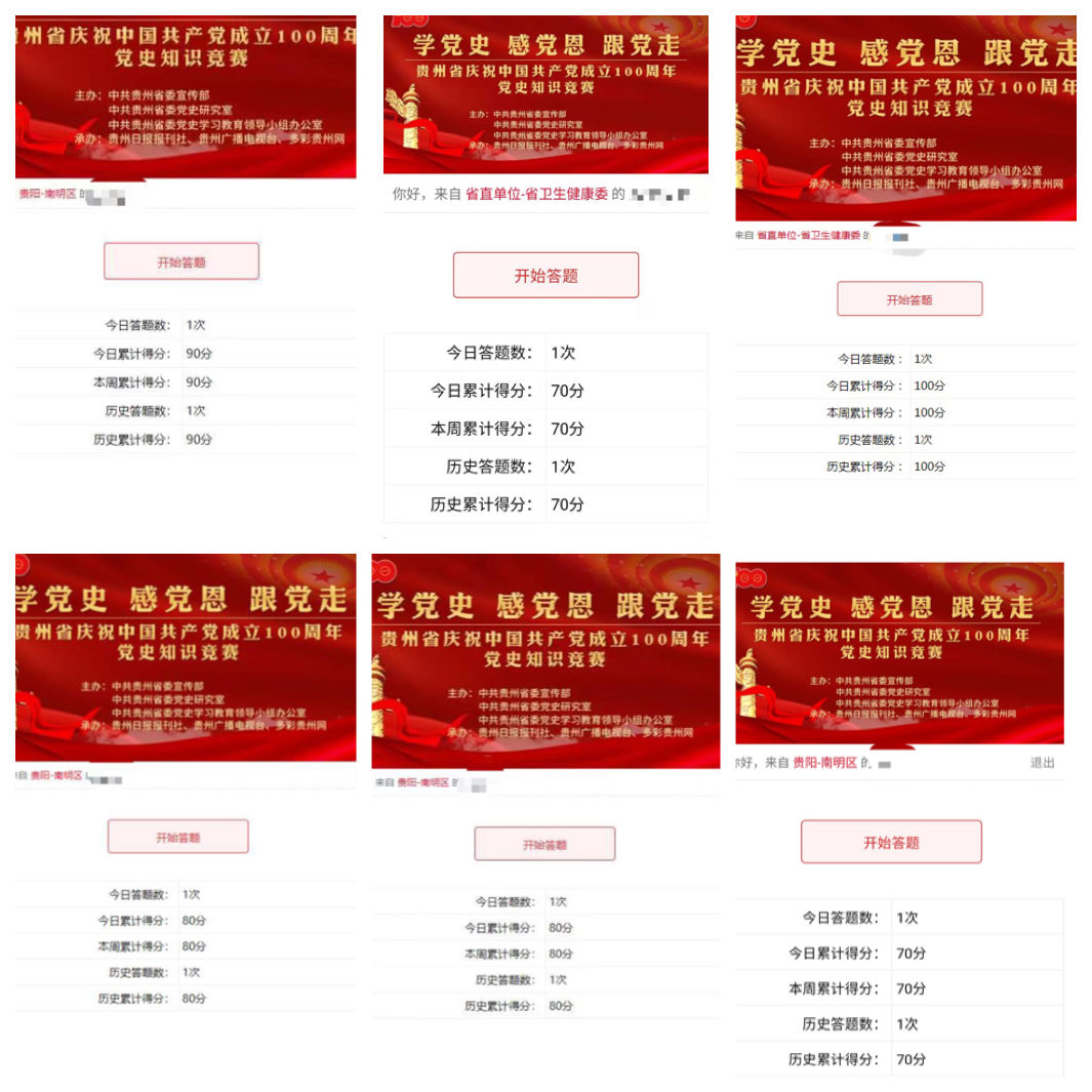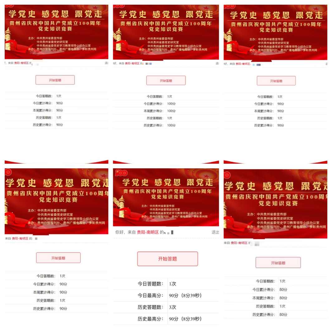 开展党史知识线上竞赛以来,支部党员经常交流党史学习知识点,并将测试成绩截图发到支部群。党史学习测试以分数体现,激发了支部党员力争好成绩的热情,大家自发组建学习团,交流答题经验,分享学习体会,形成了党史学习的良好氛围,增进了对党的创新理论的政治认同、思想认同和情感认同,推进了党史学习教育走深、走实、走心。