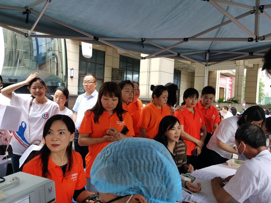 在中国共产党建党100周年即将到来之际,6月17日,宜宾市中心血站与宜宾市保险行业协会联合举办“不忘初心,守护美好”暨庆祝中国共产党成立100周年公益献血活动,在翠屏区江语城步行街举行,来自中国人寿财产保险公司、平安保险公司、太平洋保险公司等全市30多家保险公司155名志愿者积极加入到无偿献血队伍中来,献血总量达到42400毫升。