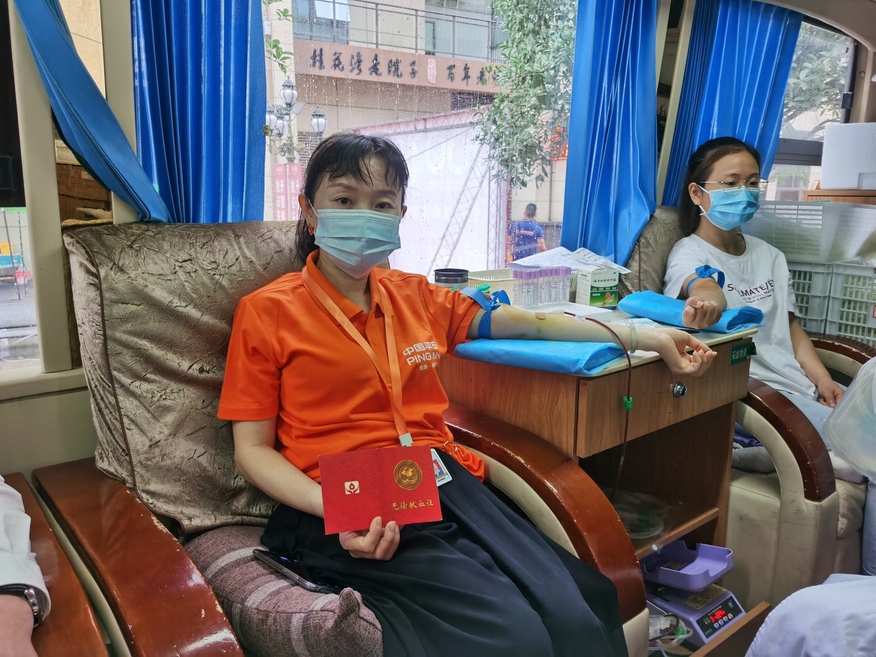 ►这是邓敏霞第六次献血了