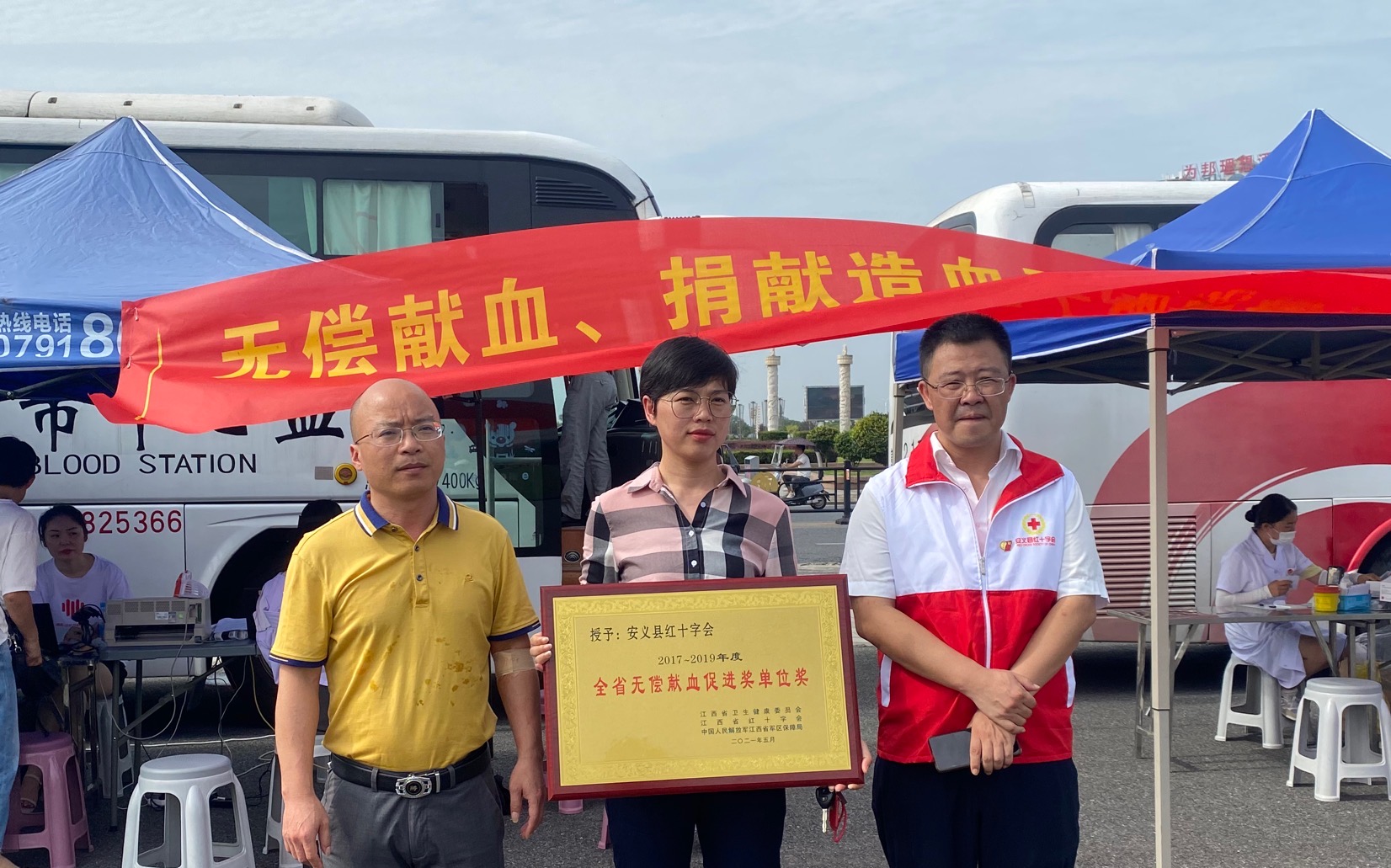 2021年6月16日,为了积极响应世界献血日主题活动。安义县教育体育局在绿地广场开展大型无偿献血活动。此次活动由安义县红十字会组织,虽然当天气温高达36度,安义县红十字会对活动十分重视,党组负责人杨垣华和会长刘丽娟不畏酷暑,全程参与活动。