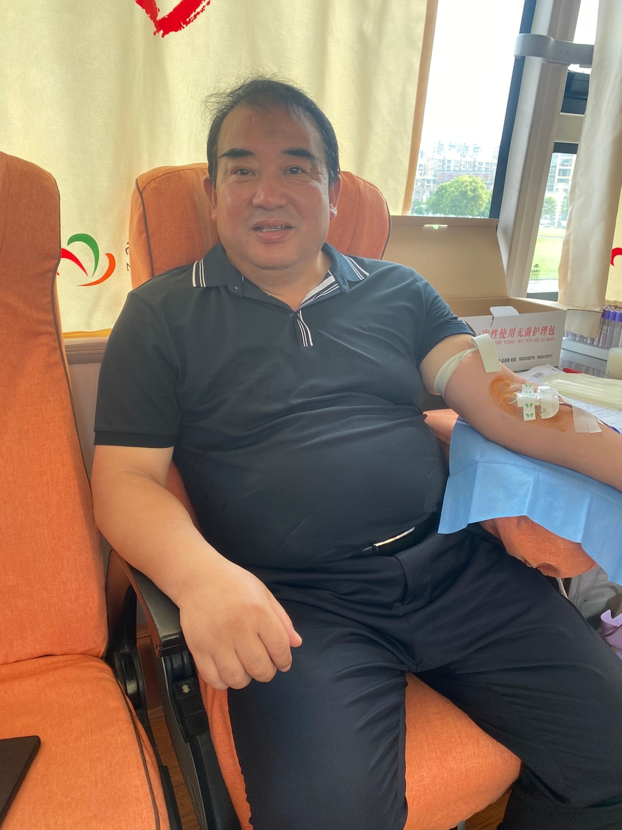 安义县教体局党委委员、副局长张云丰也是一名老献血者了,因为要开会,我们的张局长8点30就来到献血场地,急匆匆把爱心献完又赶回去工作。