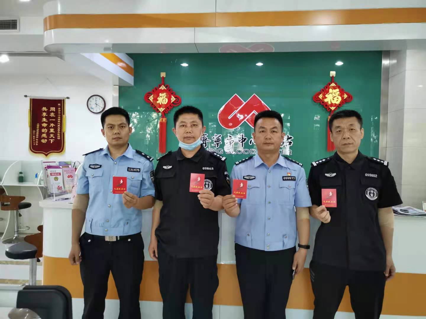 2021年6月21日下午3时许,太阳炙烤着大地,柏油路面也被晒得软软的,向远处看,寥寥无几的行人撑着太阳伞行走在马路上。就算炎炎夏日也挡不住献血的热情,济宁市公安局特警支队三大队的仲旭晨、苑立果、张作志、韩贞祥四人来到红星路献血屋,共同用热血为生命加油,用行动致敬建党100周年。