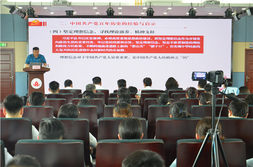 市卫健委王铁军同志以《学百年辉煌史 走伟大复兴路—学党史、悟思想、办实事、开新局》为题,从当前实际出发,深入浅出,为大家上了一堂生动的专题党课。他主要从百年之际学党史的重大现实意义和中国共产党百年历史的经验与启示两个方面,通过具体内容阐述了党的百年历史要怎么学,引导广大党习党史,要在深刻学习领悟党的革命历史的同时,从革命先烈的丰功伟绩中感受精神震撼,从先进典型的感人事迹中获得精神力量,筑牢信仰之基、补足精神之钙、把稳思想之舵,将党史中强大的精神力量作为行动指引,大力发扬红色传统、传承红色基因,赓续共产党人精神血脉,始终保持革命者的大无畏奋斗精神,为中华民族伟大复兴不断提供精神支撑和智力支持,教育引导全党鼓起迈进新征程、奋进新时代的精气神。
