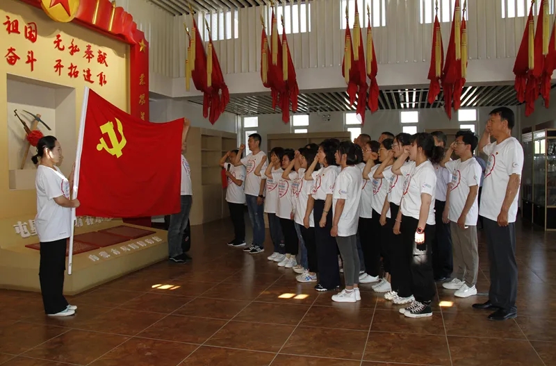 在博物馆一楼大厅,全体共产党员面对庄严的党旗,重温了入党誓词;伴随着雄壮有力的乐曲声集 体唱响红色革命歌曲,满怀深情地歌颂我们伟大的党和祖国。随后,在讲解员的引导下,全体同志怀着无比崇敬的心情有序参观了博物馆的各个展厅。一件件镌刻着岁月沧桑的实物展品和史料,无声地述说着前辈们一个个真实而又感人的革命事迹,面对历史留传下来的革命文物和记录着当时艰苦奋斗的珍贵照片,大家都仿佛置身到了当年高涨的生产活动中。革命前辈的奋斗历程,震撼着每个人的心灵,给同志们留下了难以磨灭的印象,同时也激起了大家为实现中华民族伟大复兴而努力奋斗的历史责任感和使命感。