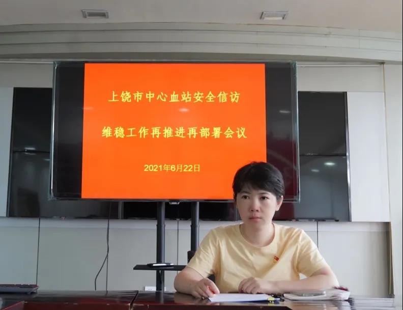 6月22日,上饶市中心血站召开安全信访维稳工作再推进再部署会议,会上,传达学习习近平总书记关于安全生产、维稳信访重要讲话和上级有关会议文件精神。同时部署了下一步血站安全生产、信访维稳工作、医疗安全、生物安全、疫情防控闭环管理安全、疫苗接种安全、违规吃喝专项治理等重点工作。会议由党支部书记、站长何敏主持。