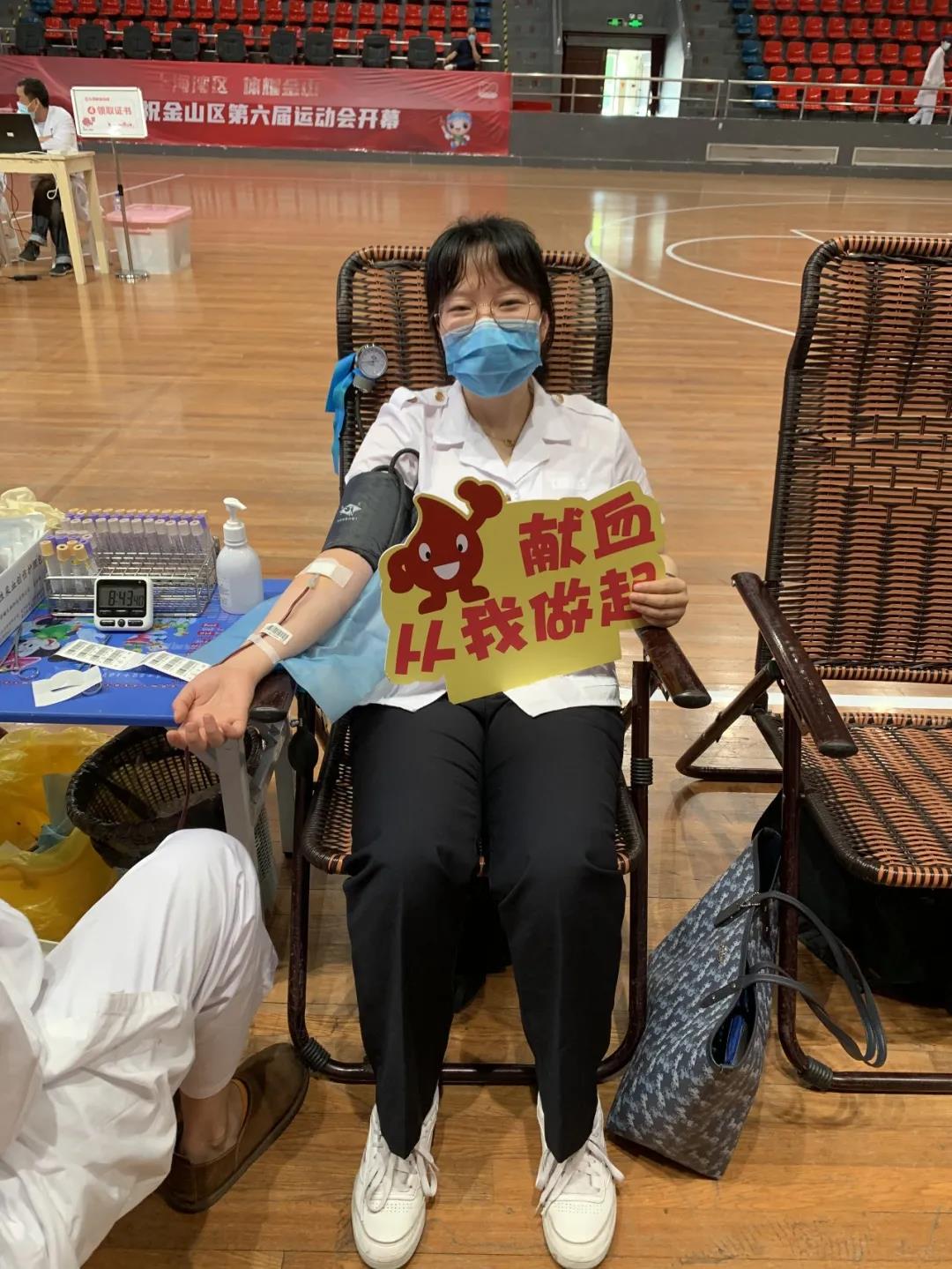 6月9日上午,金山区血站开展卫生健康系统2021年度团体无偿献血活动,广大医务工作者率先垂范,用行动诠释爱心。在此次“献血,让世界继续跳动”无偿献血活动中,共募集血液105人份21000ml。