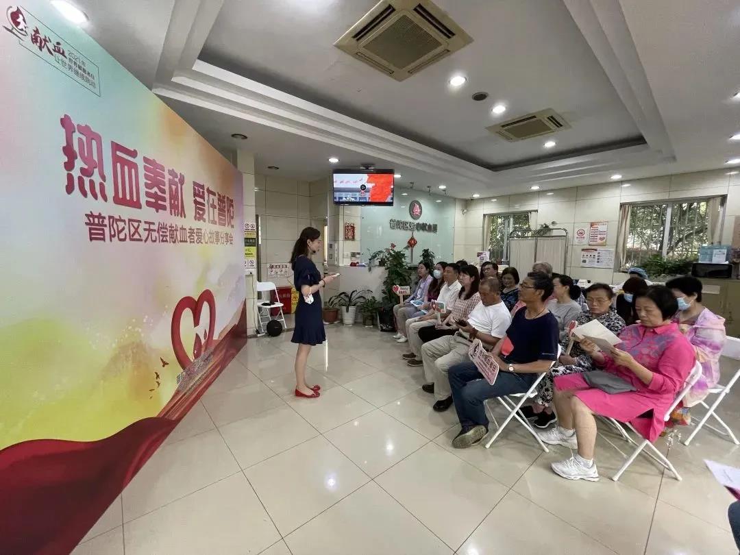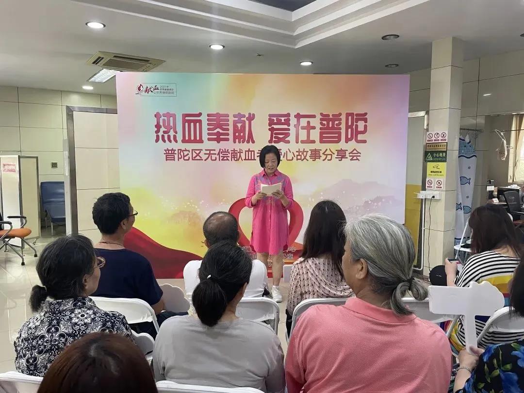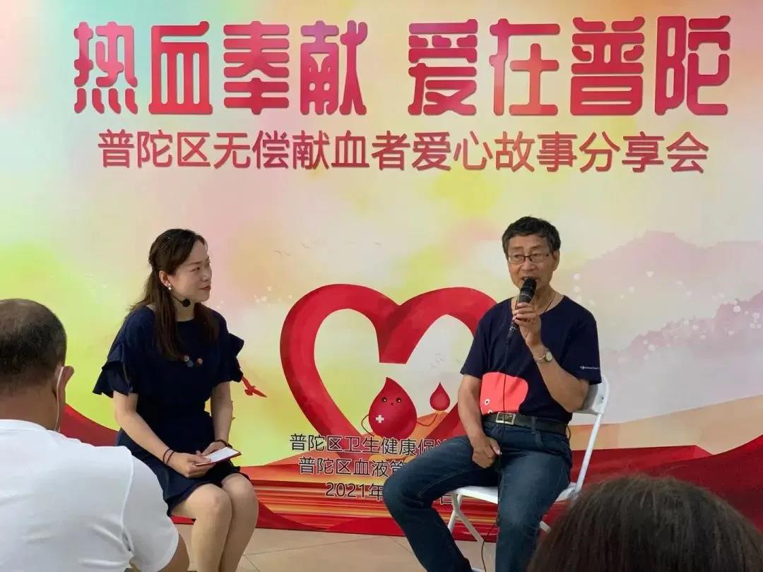 为纪念6.14第18个世界献血者日,积极响应“献血,让世界继续跳动”的活动口号,大力宣传普陀区无偿献血典型人物,突出无偿献血者通过无偿献血拯救生命和改善他人健康状况的奉献行为,不断优化普陀区无偿献血良好氛围,2021年6月11日“热血奉献 爱在普陀”——普陀区无偿献血者爱心故事分享会在普陀爱心献血屋举行。普陀区卫生健康促进中心、区血液管理办公室主任朱萍,普陀区卫生健康促进中心副主任王佳晟和来自各街镇的无偿献血工作干部以及普陀区优秀无偿献血志愿者代表们出席活动。