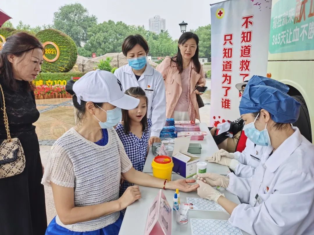 活动现场,志愿者们布置宣传版面、搭建咨询台、为无偿献血者和爱心人士提供免费测血压、测血型,用血相关政策等咨询服务。嘉定区红十字会和中国建设银行的志愿者也来到现场,向大家发放宣传资料、普及造血干细胞捐献相关知识。