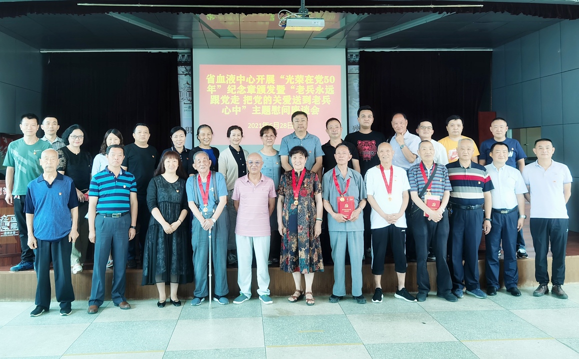 在喜迎建党100周年之际,为大力弘扬党关爱退役军人的优良传统,体现中心党委对退役军人的关怀温暖,6月28日下午,一场朴素而又庄严的“光荣在党50年”纪念章颁发暨“老兵永远跟党走 把党的关爱送到老兵心中”主题慰问活动在省血液中心大会议室举行。