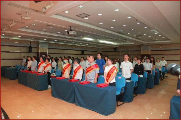 中心党委书记、主任张荣江同志为新党员佩戴党徽,带领新党员进行入党宣誓,老党员重温入党誓词。为全体党员发放政治生日卡片,集体过政治生日,全体党员合唱《没有共产党就没有新中国》。