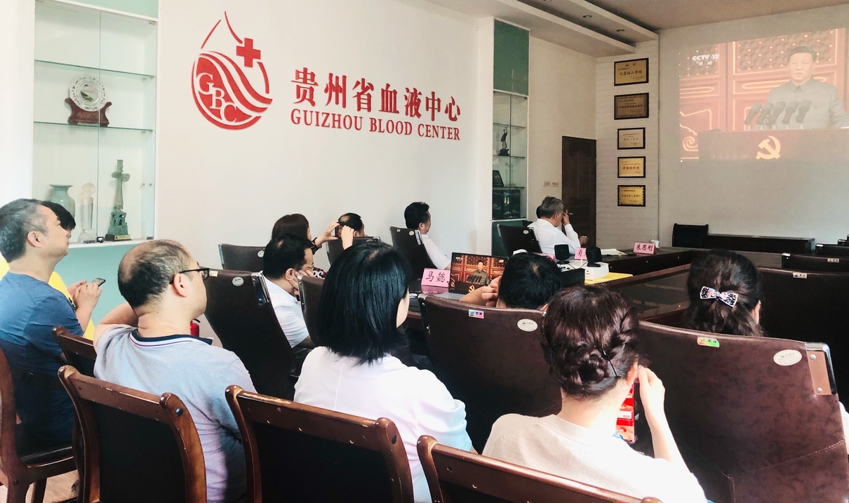 根据委直属机关党委工作部署,省血液中心党委积极组织收看,广大党员干部职工分别在中心业务楼献血服务大厅和行政楼五楼会议室两个点集中观看庆祝大会直播盛况,认真聆听习近平总书记发表的重要讲话。中心部分出差在外的在岗职工及离退休干部职工也积极通过电视主频道、各新闻网站、新媒体平台等多种载体、多种形式进行观看。