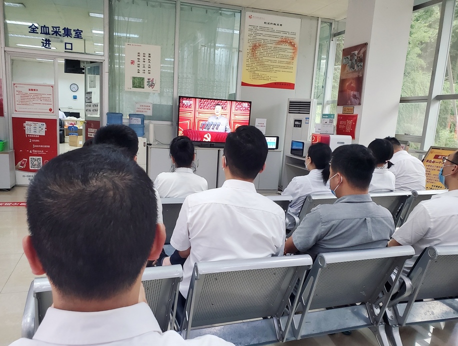 通过收看,党员干部职工们纷纷表示,要学深悟透习近平总书记的重要讲话精神,更加紧密地团结在以习近平同志为核心的党中央周围,不断增强“四个意识”,坚定“四个自信”,做到“两个维护”和“四个服从”。努力从百年党史中汲取奋斗伟力,努力在平凡的岗位上干出不平凡的业绩,用实际行动践行血液工作者的使命担当,全心全意为人民服务,全力守护好人民健康,以永不懈怠的精神状态和奋斗姿态,为推动采供血事业高质量发展,确保中心“十四五”目标圆满完成而接续奋斗。