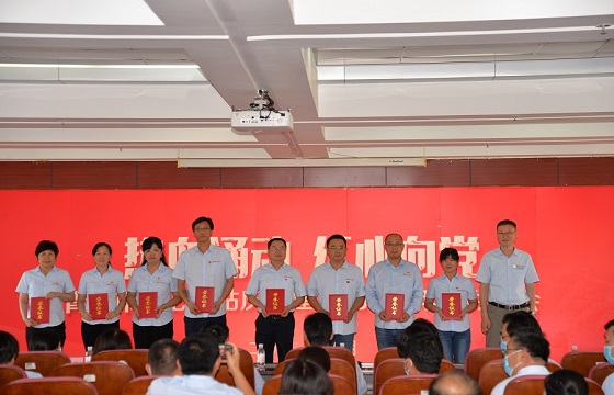 党委委员、纪委书记崔云龙,党委委员、副站长焦淑贤分别宣读《关于命名表彰“共产党员先锋示范岗”的决定》《关于表彰“学习强国”学习标兵的决定》,对被评为“共产党员先锋示范岗”的郭海蓉等15名同志、杨铭等10名“学习强国”学习标兵以及“我和我的支部”微视频大赛、“向党献礼,共绘锦绣”书画摄影剪纸大赛获奖人员进行表彰。领导班子成员为获奖先进集体和个人颁发奖牌、奖杯和证书。