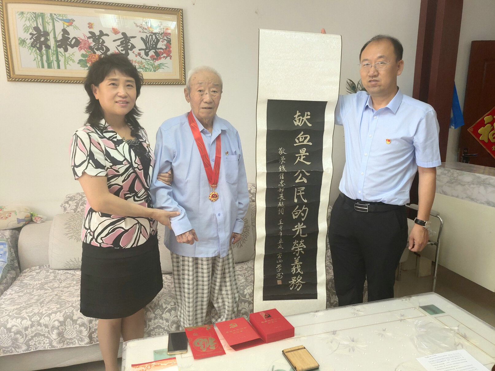 在老党员吴宝山家中,了解到吴宝山今年已87岁高龄,因两次骨折后,行动极不方便。刘亚欣书记叮嘱他要保持积极乐观的心态,保重好身体,安度晚年。吴宝山非常感动,还把自己收藏多年,亲笔书写的曾荣获包头市书法比赛三等奖的书法作品“献血是公民的光荣义务”捐赠给单位。