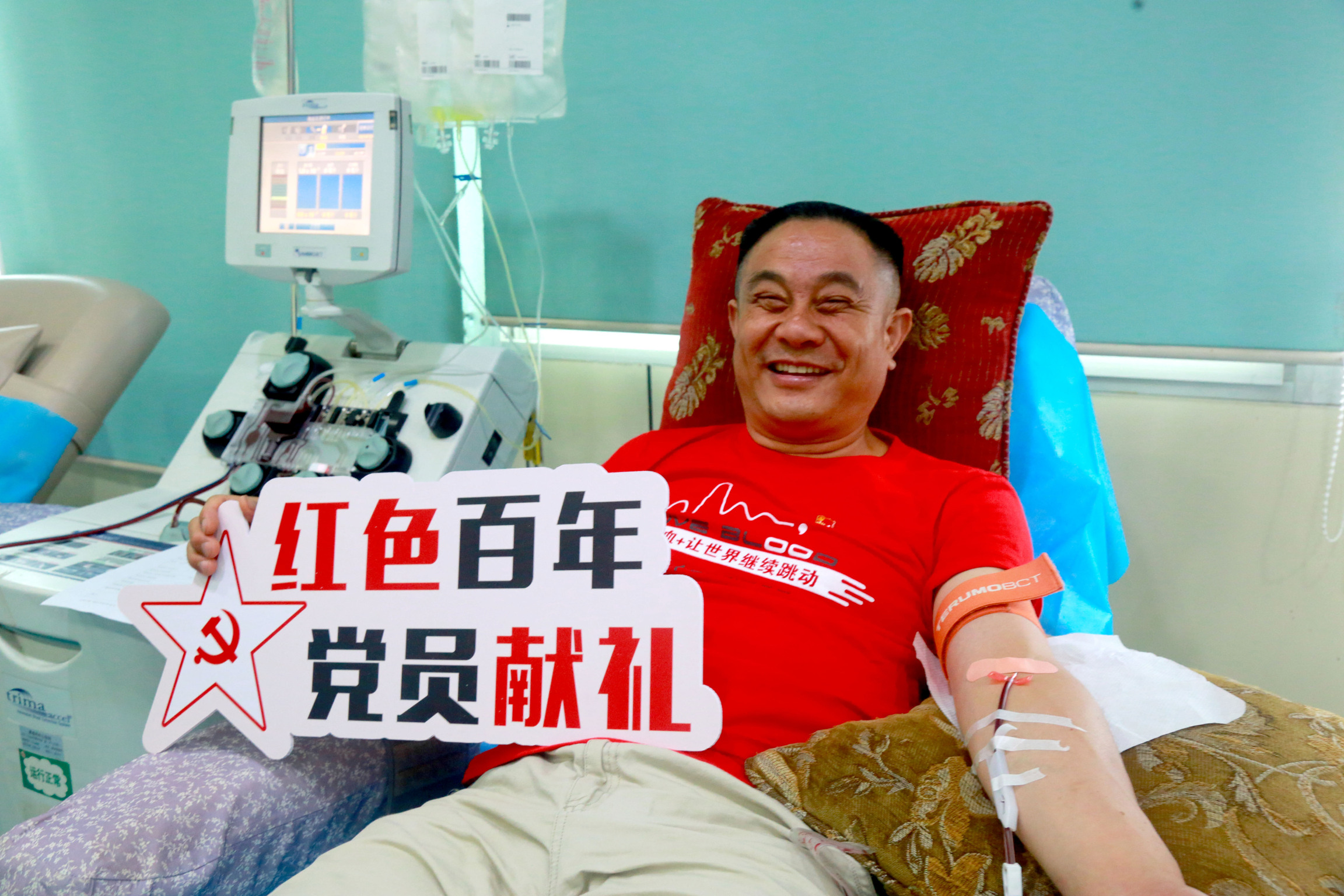 上午11点,孝感日报记者祝伟(上图)到中心血站参加献血,这是他第30次献血,刚刚收看了习总书记在党的100周年庆祝活动上的讲话,祝伟感慨地说:“在举国同庆的美好时刻,参加献血,挽救生命,非常光荣,作为一名党员,这是我认为最有意义的庆祝方式!”