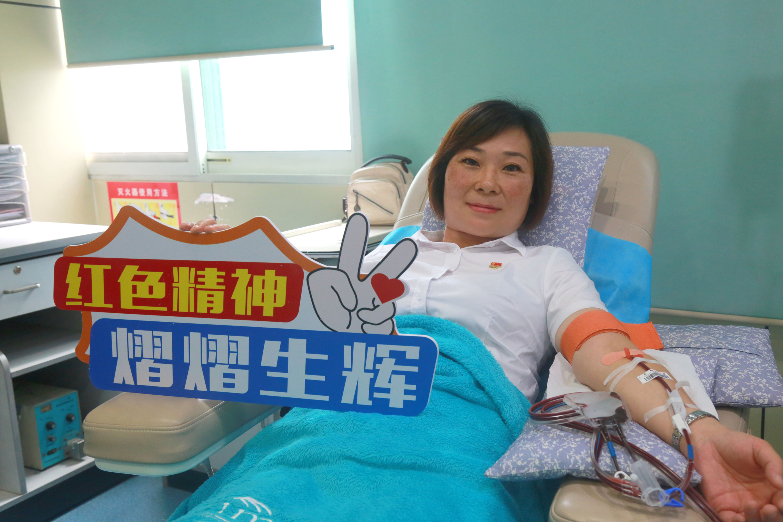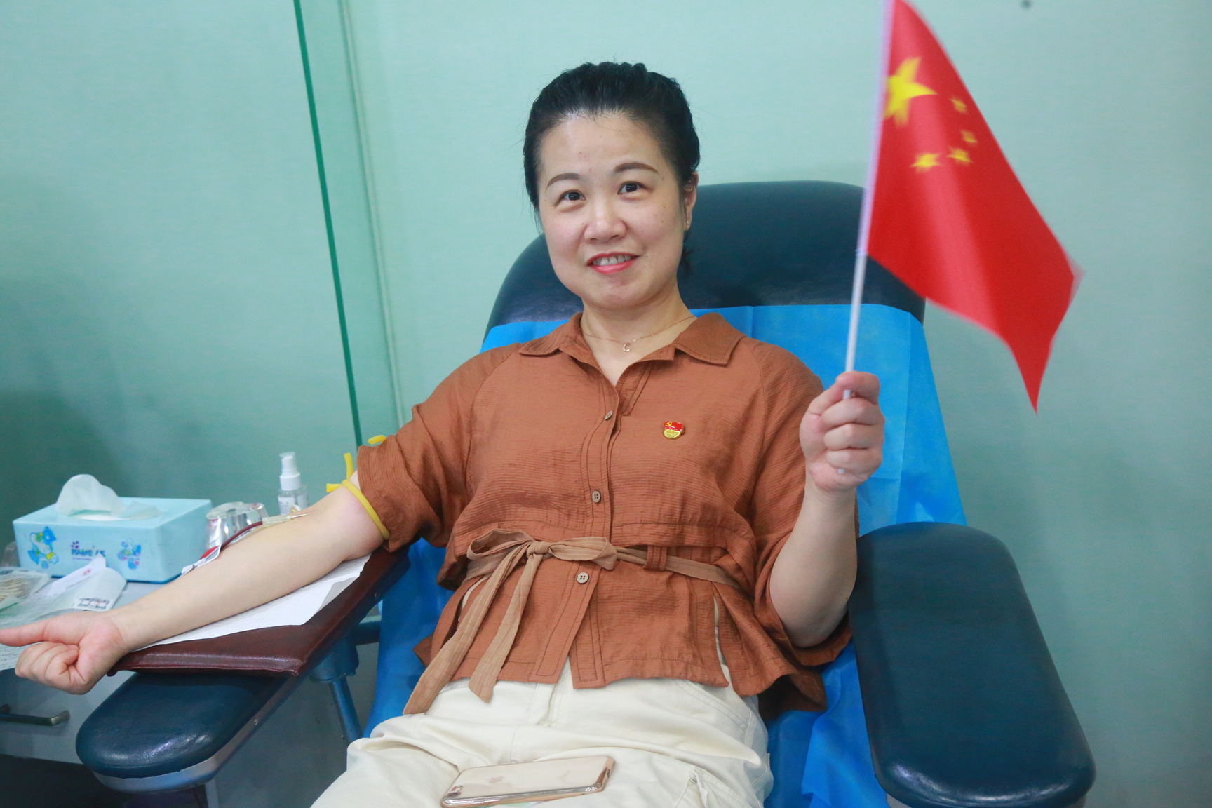 中共孝感市中心血站支部委员会委员、副站长张丽娜(上图)同样以无偿献血的方式庆祝党的生日,这是她第23次参加献血。