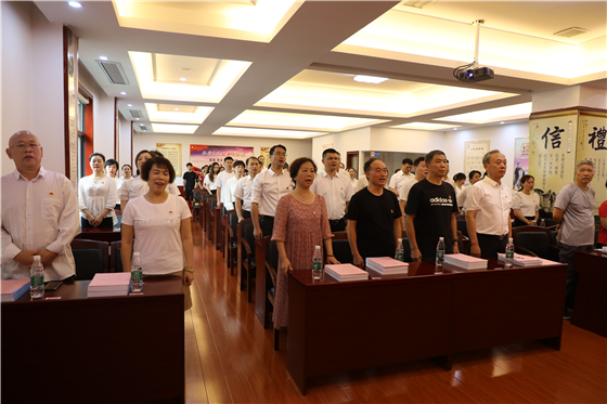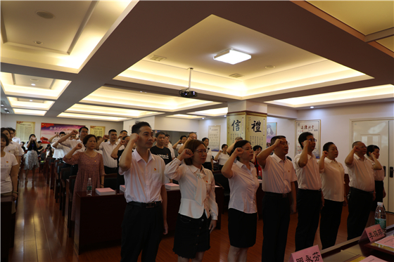 (会上,市中心血站退休老党员们同年轻党员齐唱国歌、重温入党誓词)