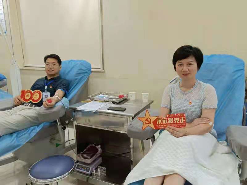 直播结束后,为铭记中国共产党建党100周年这一重要时刻,牢记中国共产党一切为了人民的使命担当,郴州市中心血站党总支号召全站符合献血条件的党员、职工积极参加无偿献血。