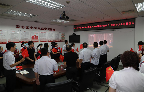 7月1日上午8时,深圳市宝安区中心血站全体党员干部在血站三楼小会议室室集中观看庆祝中国共产党成立100周年大会。