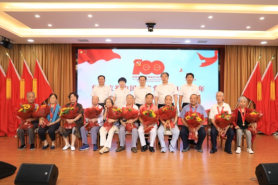 中心党委书记戚海同志在讲话中深情地表达了对老党员为中心付出青春和智慧的无私奉献行为的衷心感谢之情,向辛勤奋斗的老党员老干部和广大党员表示诚挚的问候。他指出,站在“两个一百年”奋斗目标的历史交汇点上,广大党员要对标老党员的崇高境界和务实作风,追寻老党员的奋斗历程,学习老党员几十年如一日在党敬党、忠诚于党、爱国爱民、矢志不渝的优秀品格,弘扬红色传统、传承红色基因、赓续红色血脉,不断增强荣誉感、归属感、使命感,让“光荣在党”成为一生追求的至高荣耀。他强调,在脱贫攻坚伟大成就中功成有我是血液中心的荣耀,颁发荣誉市民和荣誉村民证书,是对血液中心和驻村工作同志的最大肯定和最高褒奖,在今后的工作中,中心将与仍驻村工作的4名同志一起,弘扬脱贫攻坚精神,再接再厉,开拓创新,继续取得乡村振兴新成绩。他要求,要把“热血真情”党员志愿服务活动作为“我为群众办实事”的重要实践和党性锤炼的重要平台,用红色志愿服务身影为党旗添色,紧跟时代步伐,锤炼意志品质,奉献青春年华,学党史,感党恩,跟党走,提振迈进新征程、奋进新时代的精气神,把党史学习教育成果转化为为民办实事、解难事的实际行动,深刻践行共产党员的初心和使命,为采供血事业发展做出更大贡献!