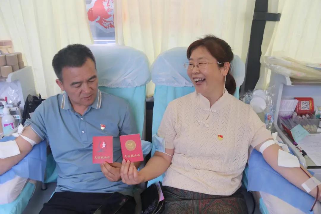 赵振山,1995年6月入党。一共捐献过四次血的赵振山说:“入党至今已经27年,我老家是河南的,前不久我们那的组织部刚提醒27岁的党员生日,我很自豪,作为一名党员,更应该积极发挥自己的作用,为公益事业义不容辞。”他的一番表述,展现了一名老党员传递爱的信念和勇气。