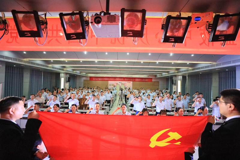 大会在雄壮的国歌声中开幕 。随着4名擎旗手迈着整齐的步伐在主席台前就位,9名新党员面向党旗庄严宣誓,在场老党员一起重温入党誓词。同志们嘹亮的声音彰显了无论在任何情形下,始终做到不忘初心、牢记使命、坚贞不渝、砥砺前行的坚定决心。