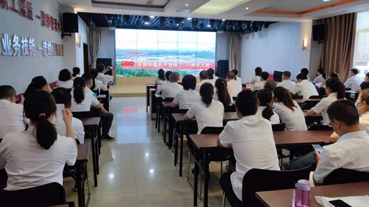庆祝中国共产党成立100周年大会今天上午8时在北京天安门广场隆重举行,中共中央总书记、国家主席、中央军委主席习近平发表重要讲话。咸阳市中心血站党支部组织全站党员干部职工收听收看中国共产党成立100周年庆祝大会直播。