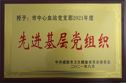 在庆祝建党100周年之际,咸阳市卫健委党委对全市卫倢系统2021年度先进基层党组织和优秀共产党员、优秀党务工作者进行表彰,咸阳市中心血站获“先进基层党组织”殊荣。