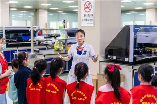 党史学习教育开展以来,徐州市中心血站把“我为群众办实事”实践活动作为基本着力点贯穿始终。7月3日上午,徐州报业传媒集团红领巾小记者团的部分成员再次走进血站探索血液奥秘,通过学习无偿献血知识,了解“一袋血的温暖旅程”。
