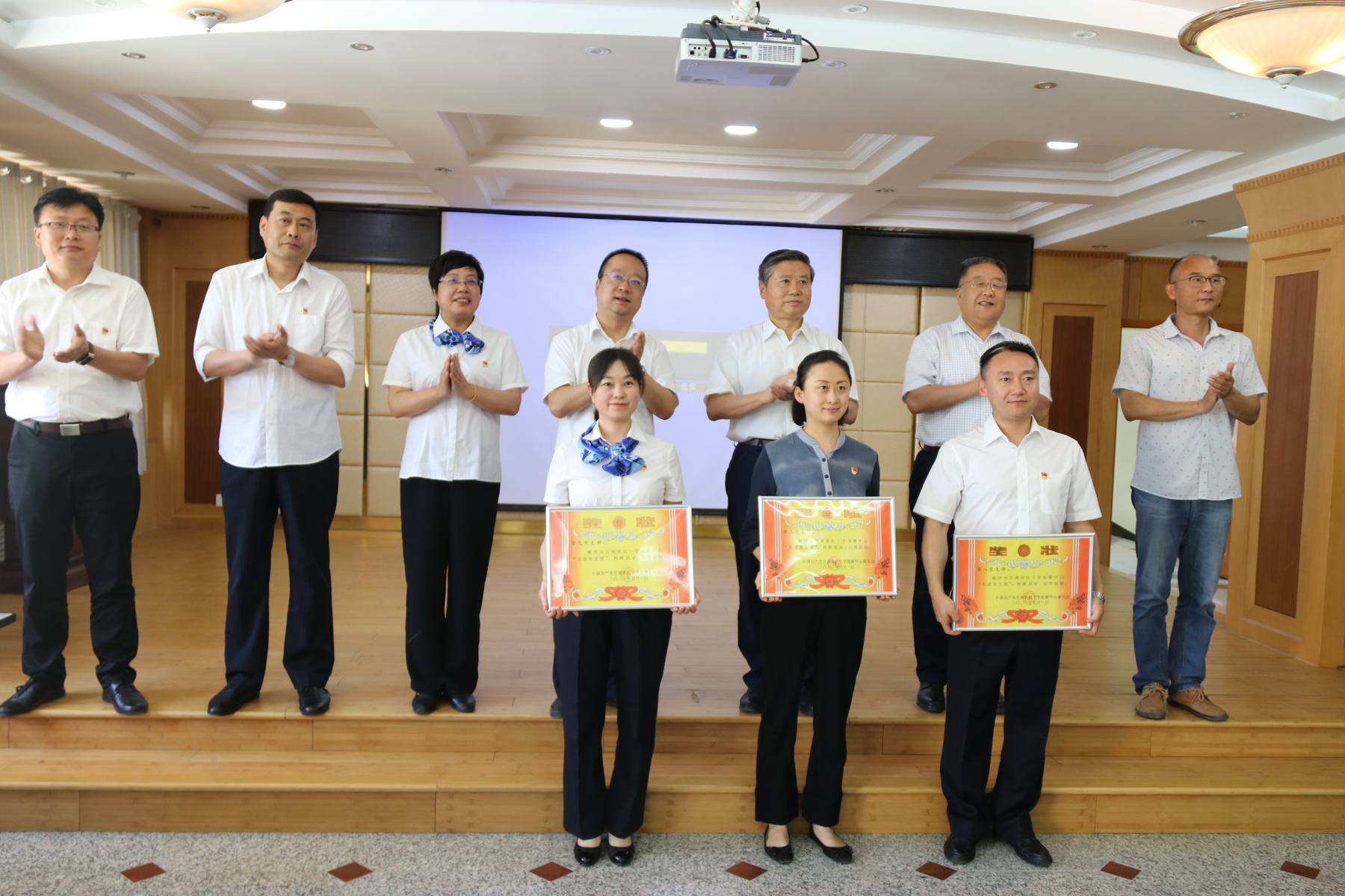 中心领导为中心“优秀共产党员”和“优秀党务工作者”共计20人颁发了荣誉证书,为3个先进党支部颁发了奖牌。