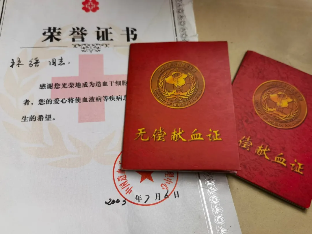在林强的抽屉里,至今还保存着早年的献血证和一张有些泛黄的造血干细胞志愿捐献者荣誉证书,献血证上记录的第一次献血时间是1993年。