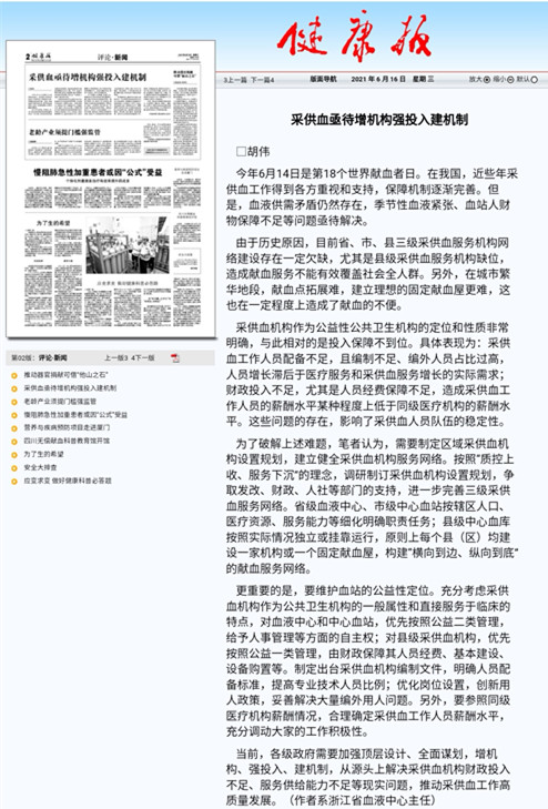 【问题与思考】采供血亟待增机构强投入建机制
