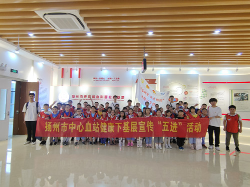 7月5日,由扬州职大与团市委联合举办的2021年“童心向党 薪火相传”暑期夏令营100余名营员及志愿者们,分两批来到位于玉人路11号的扬州市中心血站二楼无偿献血科普教育基地参观学习,开启了一段奇妙而愉快的血液探索之旅。