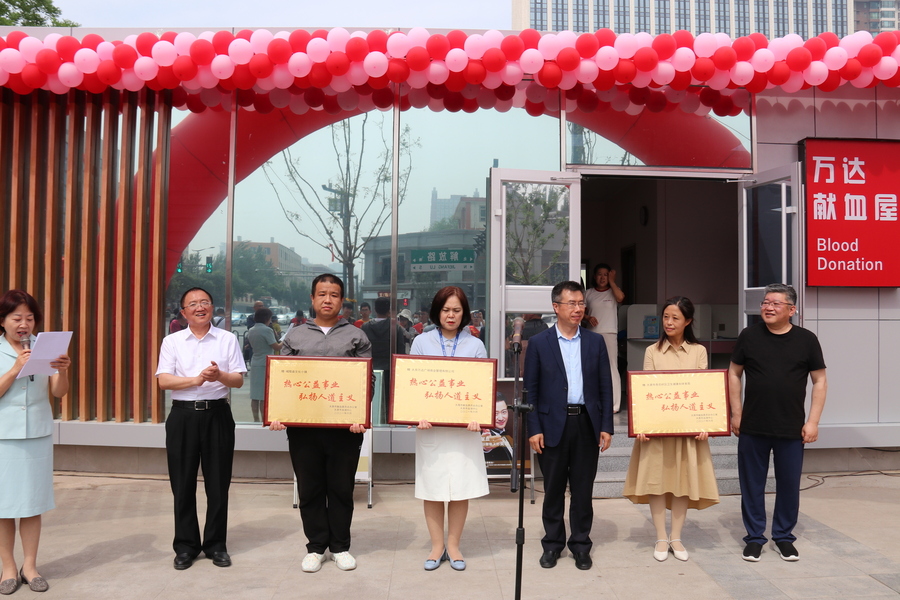 2021年6月2日上午十点,太原市血液中心在万达广场举行万达新献血屋启用仪式。启用仪式由中心党委书记许虹主持,中心主任白林致辞,太原市卫健委三级调研员张永杰致辞,并为支持建设献血屋的单位颁发牌匾。