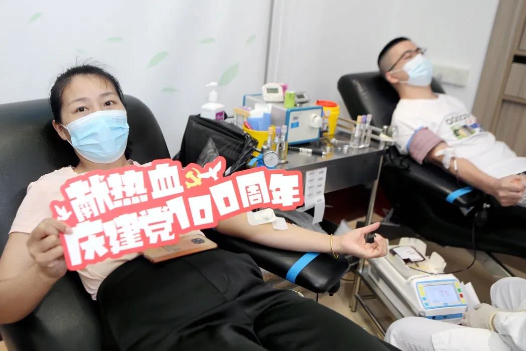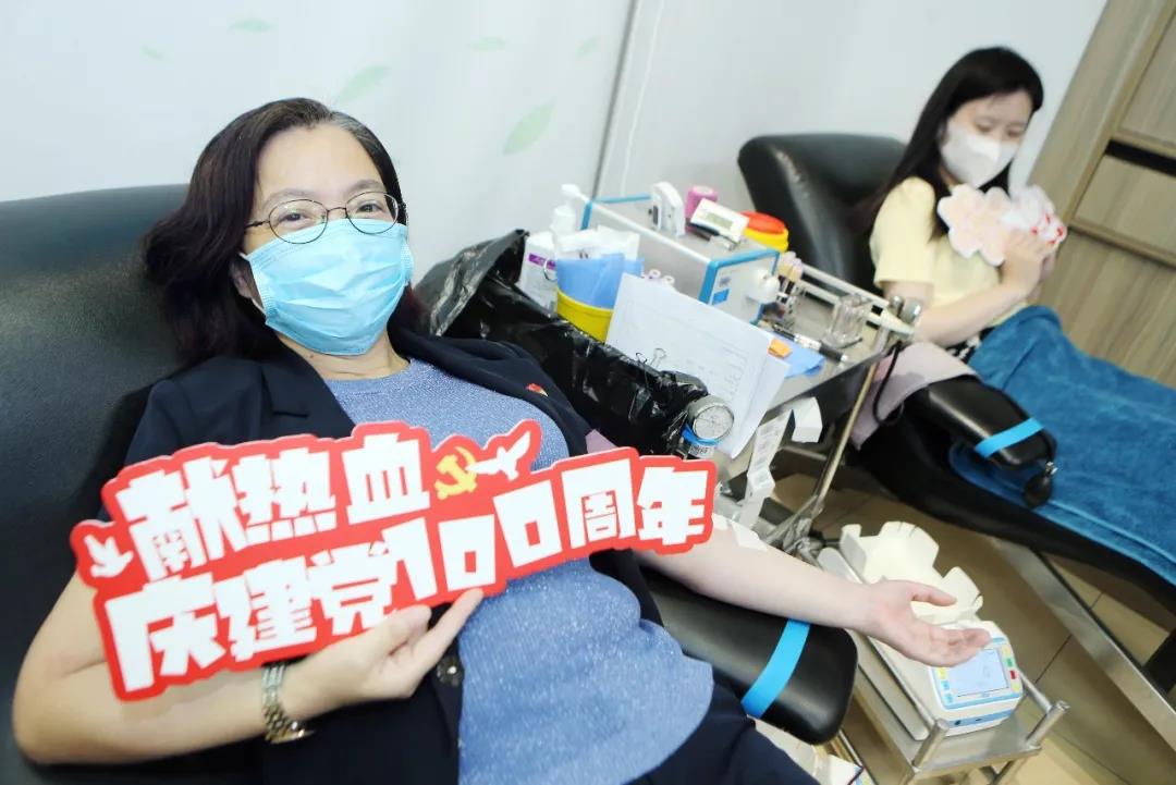 在七宝爱心献血屋,七宝明强小学党支部书记、校长姚凤和同事许波等一起献出各自的热血,她说:“无偿献血救人不但无损健康还能促进自身血液的循环,身为一名党员干部要起到先锋模范作用,用实际行动迎接建党百年华诞。”这是姚书记第3次无偿献血了。