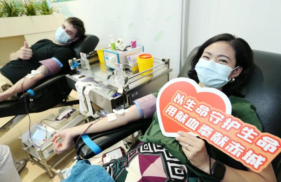 七宝德怀特高级中学的认识论老师施茹颖是第6次无偿献血了,让人感动的是她竟然把老公ANDREW HOBANYE喊来一起捐献热血。康城实验学校校长时俊也带头来无偿献血,这是他第6次无偿献血了。在他的带动下,女儿也养成了定期献血的爱心习惯。