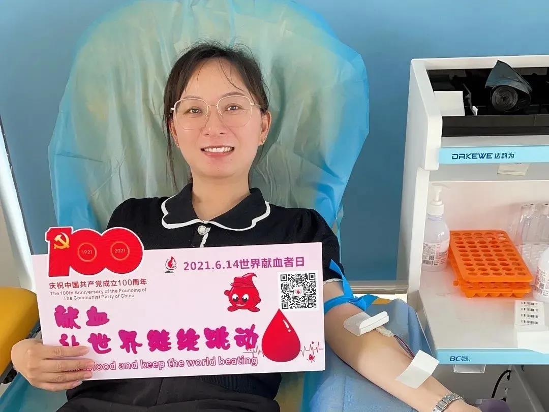 同样选择在今天无偿献血庆祝党的生日的,还有血站党员陈玲君,这位善行如一、身体力行的血液工作者,趁着中午休息来到爱心献血屋奉献爱心。