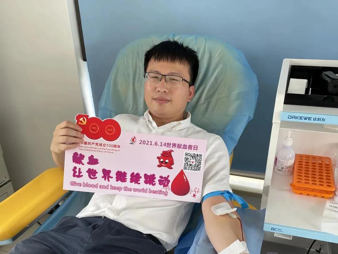 还有秉持共产党员初心践行公益的徐梦:“祝福我们伟大的中国共产党,祝福我们伟大的祖国!”献完血他笑着说。