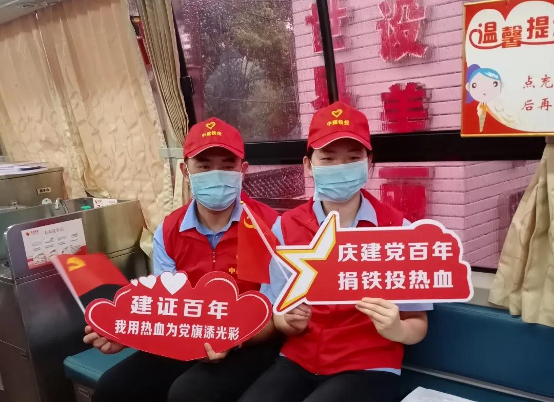 近日,我们的献血车开进中建铁投集团昌景黄铁路项目。此次活动由项目党支部和所属各分部党支部联合开展,活动主题为“我为群众办实事,无偿献血进项目”。党员干部齐争先,职工群众勇报名,铁投青年用实际行动铸就生命通道,用热血真情为党旗增辉添彩,汇聚13000ml热血献礼建党百年。