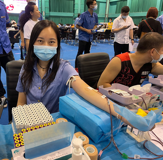 来自2021年二期通信综合1班、2班的部分学员们率先挽臂献血。谢宛洳是南宁铁路局南宁电务段的通信工,今天是她第一次献血,献完200毫升热血的她告诉记者,她的家人都是无偿献血的坚定支持者,在他们的影响下,她很早就有献血的想法,但几次都因为贫血没能成功献血,她说,“现在身体各项指标总算都合格了,下次我还要再来献血。”