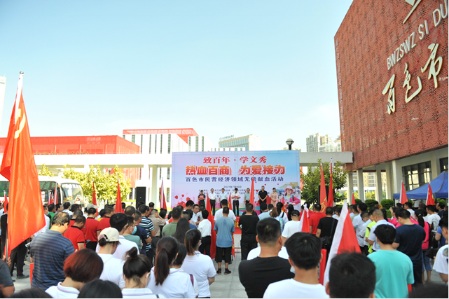 7月16日上午,由百色市工商业联合会、市公民献血委员会办公室、市工商联异地商会党委、右江区工商联联合举办的“致百年·学文秀,热血百商·为爱接力”无偿献血活动启动仪式在市图书馆举行。市工商联、市献血办领导和各商协会、企业代表及右江区民营经济人士代表约300人参加仪式。